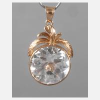 2. Hälfte 20. Jh., Gelbgold gestempelt, 18 k, besetzt mit rundem facettierten Bergkristall in Zargenfassung, im oberen Bereich florales Zierwerk, Maße ca. 33 x 19 mm, G ca. 6,2 g.