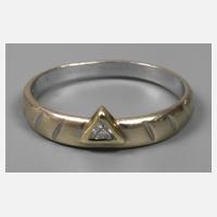 Ende 20. Jh., Gelbgold gestempelt 585, besetzt mit einer Diamanttriangel, leichte Tragespuren, RW 18 mm, G ca. 2 g.