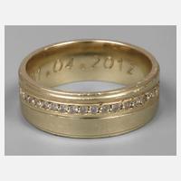 um 2010, Gelbgold gestempelt 585, B ca. 7 mm, umlaufend besetzt mit 43 Diamanten, auf Innenseite Gravur, leichte Tragespuren, RW 17,5 mm, G ca. 6,9 g.
