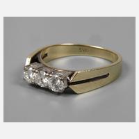 Mitte 20. Jh., Gelbgold gestempelt 585, sich auf 7 mm verbreiternde Ringschiene, besetzt mit drei Achtkantdiamanten, leichte Tragespuren, RW 18 mm, G ca. 3,2 g.
