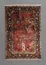 2. Hälfte 20. Jh., feiner Seidenteppich mit zentralem Motiv des sich windenden Lebensbaumes, gerahmt von zahlreichen Vogeldarstellungen, umlaufendes Schriftband, blütenverzierte Bordüren, Fransenbesatz gekürzt, Maße 154 x 97 cm.