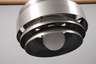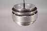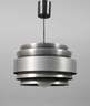 1970er Jahre, im skandinavischen Stil gefertigte Deckenlampe aus Aluminiumblech, ungemarkt, fächerartiger Schirm, einflammig elektrifiziert, H ca. 30 cm, D ca. 30 cm.