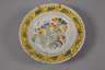 19. Jh., polychrome Bemalung in ungesättigten Farben, Brandflecken auf der Unterseite, Glasur am Rand bestoßen, D ca. 22,8 cm, H ca. 4,5 cm.