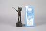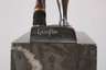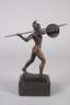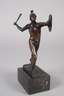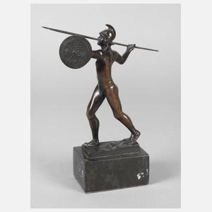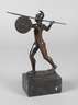 um 1910, rückseitig signiert Graefner, Bronze braun patiniert, dynamische Darstellung eines athletischen Kämpfers mit Schild und Speer, auf naturalistisch gestalteter Plinthe, auf dunklem Marmorsockel montiert, H Bronze ca. 16 cm, H ges. ca. 20 cm.