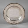 Silber, um 1800, gepunzt mit Stadtmarke St. Petersburg, Meister Alexander Yarshinov (1795–1826) und 84 Zolotniki, auf der Fahne fürstliches Wappen mit zwei Löwen und Umschrift OMNIA DE SUPER, leichte Gebrauchsspuren, D 25,5 cm, G 465 g.