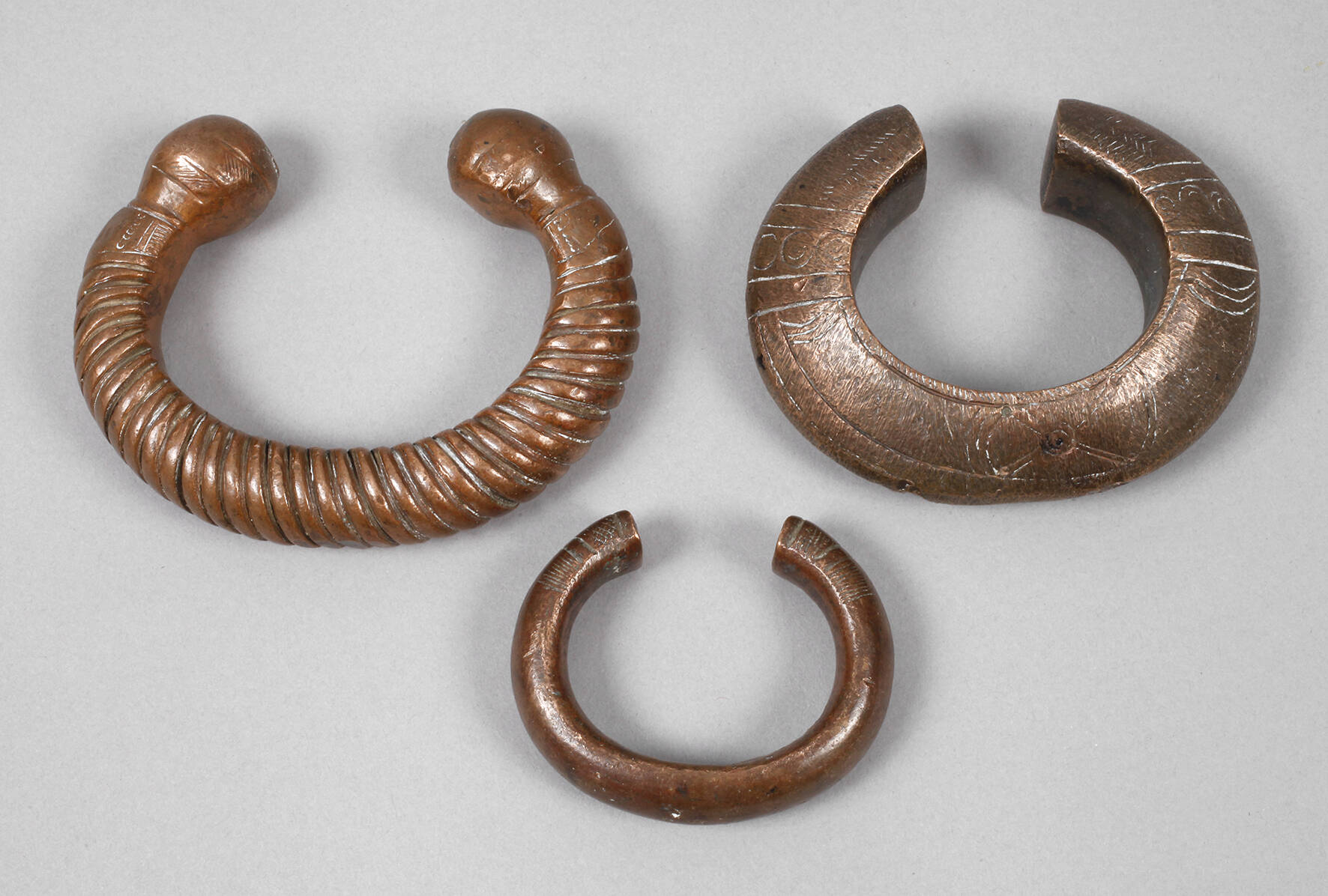 in einigen Gebieten bis in die 1950er Jahre im Umlauf, aus Bronze gefertigte Ringe, unterschiedlich gestaltet, sehr gut gearbeitet, D 8-12 cm.