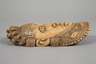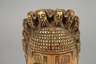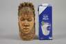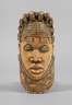 um 1920, Elfenbein beschnitzt und ornamental verziert, stilisiertes Nubierhaupt, trocknungsrissig, Altersspuren, H 22 cm.