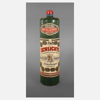 1. Hälfte 20. Jh., Weißblech farbig gefasst, halbplastisch in Form einer Flasche gearbeitet, die Etiketten aus farbig gefasstem Papier, stärkere Alters- und Gebrauchsspuren, Z 2–3, H 175 cm.