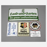 1. Hälfte 20. Jh., mit Angabe unterschiedlicher Druckanstalten, dabei C. Robert Dold, Boos & Hahn, Schulze & Wehrmann sowie Hölzl Wien, verschieden große gebauchte, mehrfarbig emaillierte Türschilder unterschiedlicher Auftraggeber, alle mit originalen Bohrungen, in meist sehr guter Erhaltung, Z 1–2, L max. 49 cm.