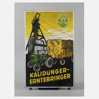 1930er Jahre, Hersteller Stark & Riese Roda-Thür., langrechteckiges, stark gebauchtes Schild, mehrfarbig, teils erhaben emailliert, vier originale Bohrungen, kleinere Emailleverluste Z 2, Maße 33 x 49 cm.