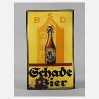 Anfang 20. Jh., mit Herstellervermerk Boos & Hahn, hochrechteckiges gebauchtes Schild, mehrfarbig emailliert, für die Dessauer Traditionsbrauerei Schade, vier originale Bohrungen, Craquelure, größere Emailleverluste Z 3, Maße 40 x 23 cm.