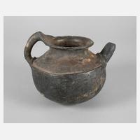 undatiert, Keramik, altziegelfarbener Scherben, kugelbauchiges Gefäß, am Umbruch zur Schulter eine Ausgusstülle, Stabhenkel am umgeschlagenen Rand, Ritzverzierung, deutliche Gebrauchsspuren, H ca. 18 cm, D Bauch ca. 17 cm.