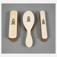 Ende 19. Jh., Elfenbein, Besatz aus Naturborsten, aufgelegtes ligiertes bekröntes Monogramm MN, laut ungeprüfter beigegebener Annotation aus dem Besitz derer von Thüngen in Burgsinn, leichte Altersspuren, ein Monogramm mit leichter Fehlstelle, L max. 20 cm