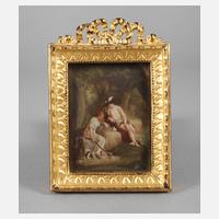 Anfang 20. Jh., signiert Pêcheur, Gouache auf Elfenbeinplatte, stark verkleinerte Kopie des berühmten Dresdner Originals, hinter Glas in vergoldete Messingleiste gefasst, Maße 15 x 11 cm.