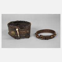 um 1920, unbezeichnet, geschnitzte wappenförmige Wandplatten mit montierten Oryxantilopengehörnen, leichte Altersspuren, H je ca. 110 cm.