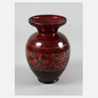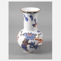 unterglasurblaue Stempelmarke ab 1924, undeutlicher roter Zusatzstempel und Pinselnummer 505/5021 52, bauchiger Korpus mit zylindrischem Hals und ausschwingender Mündung, umlaufender Dekor aus drei Eichhörnchen und Vögeln im blühenden Geäst in kobaltblauer Unter- und eisenroter Aufglasurmalerei mit Goldstaffage und Goldrändern, innen reinigungsbedürftig, H 29 cm.