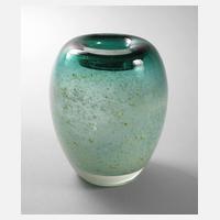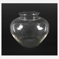 Entwurf Walter Dexel 1936, farbloses Glas, plangeschliffener Stand, eingezogener Mündungsrand, eiförmig, mit eingeschmolzenem Blasenglas und verlaufender Farbschicht nach Grün, geringe Gebrauchsspuren, H 18 cm.