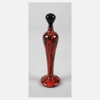 Frankreich, um 1925-30, wohl Verréries Charles Schneider Epinay sur Seine, farbloses Glas, mit Pinseldekor in Rot und Schwarz, klar überstochen, Stopfen aus schwarz scheinendem Glas, guter Zustand, H 18,5 cm.