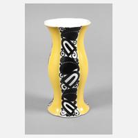Oepiag Karlsbad-Pirkenhammer, grüne Stempelmarke 1918-1920, mittig gebauchte und sechspassig geschweifte Form mit alternierendem Vertikaldekor aus gelben Fondfeldern und stilisiertem Floralband in schwarzer Aufglasurmalerei, guter Zustand, H 22 cm.