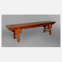 Ende 19. Jh., Rüster massiv, schlichtes Modell mit leicht konisch zulaufenden Beinen, Alters- und Gebrauchsspuren, Maße 51 x 200 x 36 cm.