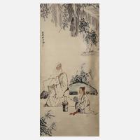 19. Jh., unsigniert, Mischtechnik auf Reispapier, figürliche Darstellung eines drangsalierten Gefangenen, stärkere Erhaltungsmängel, hinter Glas gefasst, BM 20 x 26 cm.
