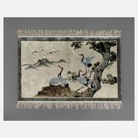 2. Hälfte 20. Jh., elegantes Modell in zurückhaltender Farbigkeit, welches eine Gruppe Reiher in weiter Landschaft zeigt, reinigungsbedürftig, sonst gute Erhaltung, Maße ca. 152 x 95 cm.