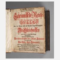 des Reichs Gottes über die Sonn-, Fest und Apostel-Tags-Evangelia, in Gleichnissen [...], Görlitz und Budißin 1727, Format 8°, 15 Blatt, 1092 und 760 S., Kupferfrontispiz herausgetrennt, Pergamenteinband, altersgemäße Erhaltung (etwas abgegriffen und fleckig).