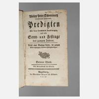 für den frommen Landmann, auf alle Sonn- und Festtage des ganzen Jahres, Dritter Theil, Augsburg bei Riegers sel. Söhnen 1779, Format 8°, 8 Blatt, 634 S., 15 Blatt, Halbledereinband wurmstichig, Kanten bestoßen, Rotschnitt, Buchblock altersgemäß gut erhalten.