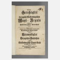 der Herzoglich-Mecklenburgischen Maaß-Reguln in Ansehung der Mecklenburgischen Ritterschaft überhaupt, 1750, Format Gr. 4°, 270 und 147 S., neu gebunden, altersgemäß gut erhalten.