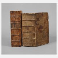 Cornucopiae Linguae Latinae et Germanicae [...] von Adam Friedrich Kirsch, Regensburg 1739, Format Lex. 8°, 1274 und 416 S., geprägter Ledereinband, Buchschließen defekt, sichtbare Studierspuren; Dictionaire Italien et Francois, von Charles Placardi, 2 Bände in einem Buch, Basel bei Tourneisen [Jahreszahl nicht zu erkennen, Titelblatt erneuert], Format Lex. 8°, 524 und 442 S., auf dem Vorsatz moderne Reproduktion eines Exlibris der Eleonore Maximiliane Christine zu Stolberg-Reuß, Halbledereinband, Rotschnitt, altersgemäßer Zustand.