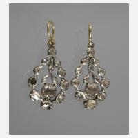 um 1870, Silber und Gelbgold geprüft, tropfenförmig durchbrochen gearbeitet, vollflächig besetzt mit Diamantrosen, eine Reparaturstelle, Maße ca. 40 x 19 mm, G gesamt ca. 11 g.