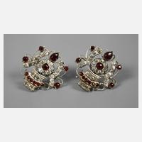 Mitte 19. Jh., Metall vergoldet, besetzt mit zahlreichen Glassteinen und facettierten Granaten, Bügel vergoldet, Tragespuren, Maße Ohrringe 29 x 27 mm.