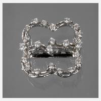 um 2000, Weißgold gestempelt 750, durchbrochen gearbeitet, besetzt mit 22 Diamanten mit einem Gesamtgewicht von ca. 1 ct, Maße ca. 22 x 21 mm, G ca. 7,6 g.