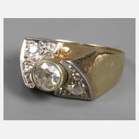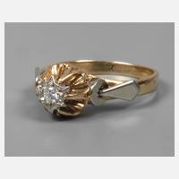 um 1960, Weiß- und Gelbgold geprüft 585/1000, besetzt mit einem Brillanten von ca. 0,1 ct, leichte Tragespuren, RW ca. 16 mm, G ca. 3,9 g.