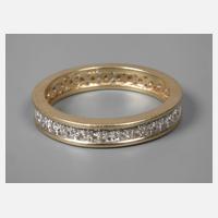 neuzeitlich, Weiß- und Gelbgold gestempelt 585, durchbrochen gearbeitet, umlaufend besetzt mit zahlreichen Kleinstbrillanten, leichte Tragespuren, RW 21 mm, G ca. 5,7 g.
