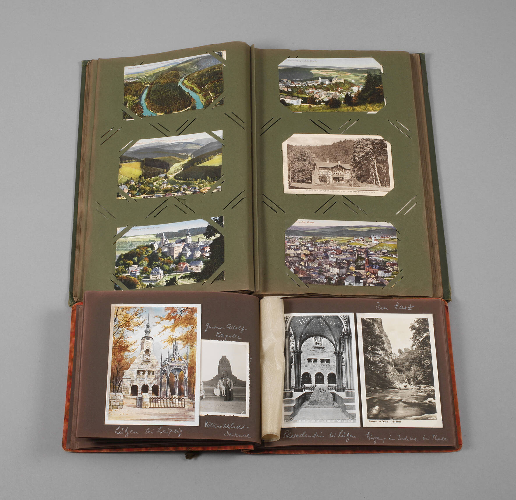 Zwei Postkarten- und Fotoalben
