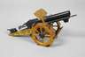 1930er Jahre, ungemarkt, Blech mimikry lackiert, zum Verschießen von Gummigranaten bzw. Kugeln, mit intakter Federspannung, Schutzschild und Laufplatten an den Rädern, Alters- und Gebrauchsspuren, Spannhebel gelötet, L 25 cm.