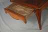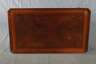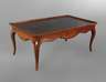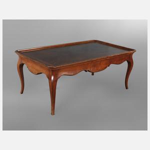 wohl England, Ende 18 Jh., Mahagoni massiv, Schübe und Zarge aus Eiche, Zarge mit rundem Brandstempel, ungedeuteter Hersteller, rechteckige Platte mit hohem profilierten Rand und umlaufender ebonisierter Fadeneinlage, an den Schmalseiten je ein großer Schubkasten, die s-förmig geschwungenen Beine mittels Holznägeln mit der Zarge verbunden, Alters- und Gebrauchsspuren, etwas rest.bed., Maße 48 x 121 x 70 cm.