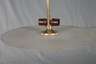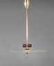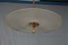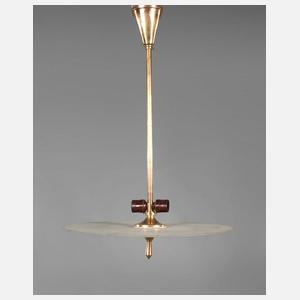 deutsch, 1920er Jahre, Messingmontierung und matt geätzte Glasscheibe, zweiflammig elektrifiziert, neu verkabelt, H 63 cm, D 50 cm.