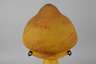 wohl Frankreich, 1930er Jahre, unsigniert, zweiteiliger Korpus aus klarem säuremattierten Glas, mit Pulvereinschmelzungen in Gelb, Orange, Türkis und Braun, schmiedeeiserne Montierung, zweiflammig elektrifiziert mit beleuchtetem Schaft, Kabel erneuert, Montierung etwas locker, sonst guter Zustand, H 63 cm.