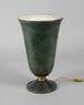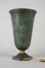 Frankreich, um 1920, ungemarkt, in Form einer Trichtervase gestaltetes Modell aus grün patinierter Bronze, einflammig alt elektrifiziert, H 42 cm.