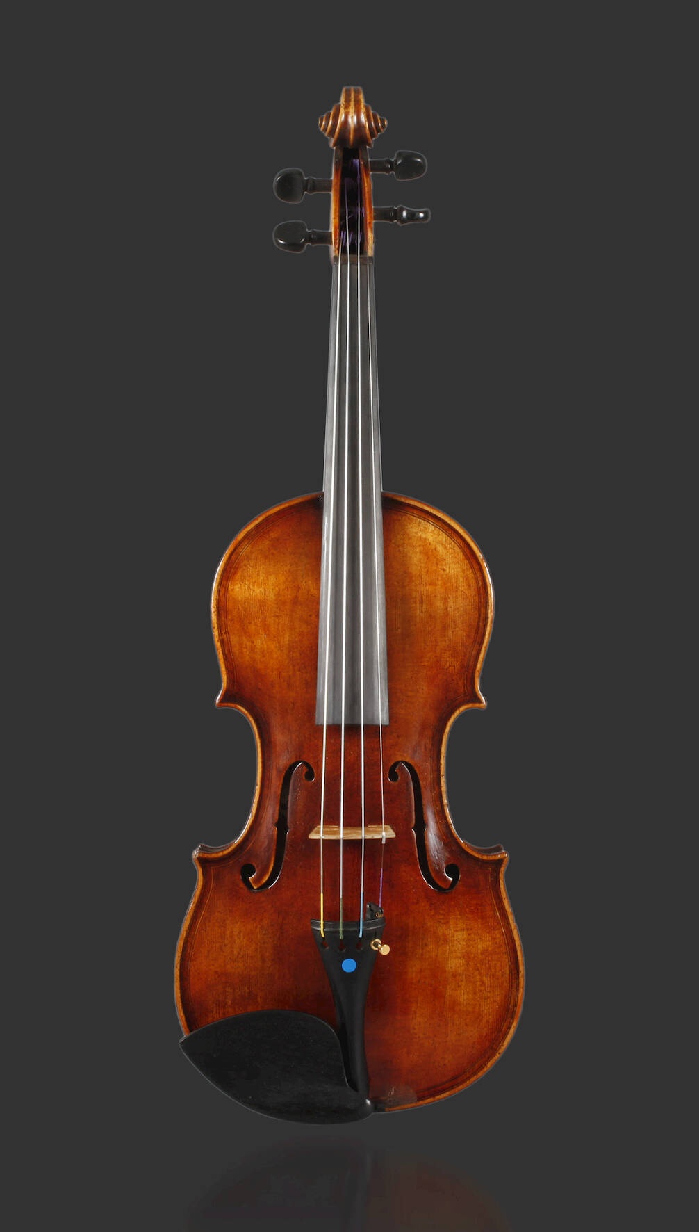 um 1880, innen auf Klebezettel bezeichnet Joseph Felix Riedl, Musikinstrumenten Fabrikant in Wien, ungeteilter Boden und Zarge aus sehr breitem Ahorn, Hals und Schnecke aus schmalem Spiegelahorn, heller goldbrauner Lack, rissfreie Decke aus sehr feinjähriger Resonanzfichte, spielbereiter Zustand, mit Bogen, im Etui, dieser gemarkt Tubbs, polygonal facettierte Stange aus Fernambukholz mit Montierungen aus Silber und Perlmutt, L Korpus 36,0 cm.