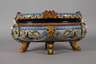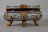 gemarkt Johann Glatz Villingen, um 1880, Majolika farbig glasiert, Reliefdekor im Renaissancestil, unauffällig restauriert, Maße 24 x 50 cm.