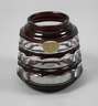 Belgien, um 1930, massives farbloses Glas, ausgekugelter Abriss, rotbraun überfangen, geometrischer Schliff, sehr guter unbeschädigter Zustand, H 14 cm.