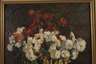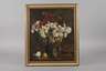 herbstliches Arrangement mit zwei Chrysanthemensträußen, in hohen Vasen, vor braunem Grund, gering pastose Stilllebenmalerei, Öl auf Leinwand, um 1950, rückseitig in dt. Kurrentschrift signiert und betitelt sowie Adressangabe des Künstlers "Richarde [sic] Miller, akadem. Maler, Dresden-Loschwitz, Künstlerhaus »Chrysanthemen«", gerahmt, Falzmaße ca. 54 x 46 cm. Künstlerinfo: nannte sich auch "Richarde Miller", dt. Maler, Gebrauchsgraphiker, Radierer und Holzschneider (1905 Leipzig bis 1959 Dresden-Loschwitz), 1922–25 Lehre zum Gebrauchsgraphiker in Leipzig und Abendkurse an der Akademie Leipzig, hier ab 1925 Studium bei Fritz Ernst Rentsch, 1929–34 mit Stipendium der Stadt Leipzig Studium an der Dresdner Akademie bei Richard Müller und Robert Sterl, hier Meisterschüler bei Georg Lührig, ab 1934 freischaffend in Dresden, 1939–45 Kriegsdienst im 2. Weltkrieg, 1939–59 tätig im Atelier "I" im Künstlerhaus Dresden Loschwitz, Mitglied im Verband Bildender Künstler (VBK) der DDR, beschickte die Deutsche Kunstausstellung Dresden, Quelle: Vollmer, Saur "Bio-Bibliographisches Künstlerlexikon", "Sächsische Biografie", Homepage des Künstlerhauses Loschwitz, Eisold "Künstler in der DDR", "Künstler am Dresdner Elbhang", Katalog Deutsche Kunstausstellung Dresden 1962 und Wikipedia.