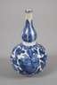 um 1800, ungemarkt, Porzellan in kobaltblauer Unterglasurmalerei, in Form einer Kalebasse gearbeitete Solifleur, die Wandung verziert von Blatt- und Blütenranken, Mündung mit zarter Metallmontierung, Hals partiell berieben, winz. brandfleckig, H 16 cm.