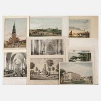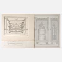 drei Blatt, 1.) "Perspectivische Ansicht des Zuschauerraumes im königl. Schauspielhause zu Berlin, von der Scene aus gesehen", 2.) "Fenster der Kirche auf dem Werderschen Markt in Berlin" und 3.) "Platfond-Verzierung des Zuschauerraumes in dem Schauspielhause zu Berlin", Stahlstiche, um 1830, unter der Darstellung weiterhin bezeichnet links "Schinkel del:" und rechts Ferdinand Berger, bzw. "C. F. Thiele", Verlegerangabe "Verlag von Ernst & Korn in Berlin", leichte Altersspuren, Darstellungsmaße ca. 48 x 38 cm, Blattmaße ca. 59 x 46 cm. Künstlerinfo: bedeut. dt. Baumeister, Architekt, Denkmalschützer, Stadtplaner, Maler, Graphiker und Bühnenbildner (1781 Neuruppin bis 1841 Berlin), Kindheit in Neuruppin, 1794 Übersiedlung nach Berlin, ab 1798 Freund und Schüler des Architekten Friedrich Gilly, ab 1799 parallel Studium an der Berliner Bauakademie und Gasthörer an der Akademie der Schönen Künste, 1800 Tod von Friedrich Gilly, dessen Bauwerke Schinkel zusammen mit dem Vater David Gilly vollendete, 1803 Studienreise nach Italien mit Studienaufenthalten in Dresden, Prag, Wien, Triest, Venedig, Padua, Ferrara, Bologna, Florenz und Siena nach Rom, hier Freundschaft zu Wilhelm von Humboldt, 1804 Weiterreise nach Neapel und Sizilien, Ende 1804 Rückreise über Pisa, Livorno, Genua, Mailand, Turin und Lyon nach Paris und 1805 Heimkehr über Straßburg, Frankfurt und Weimar nach Berlin, 1807–15 vor allem als Panoramenmaler tätig, auf Vermittlung Humboldts ab 1810 Anstellung als Dezernent für künstlerische Fragen und Geheimer Oberbauassessor bei der Berliner Oberbaudeputation, Freundschaft zu Clemens Brentano, mit dem er 1811 Graf Hermann von Pückler-Muskau besuchte, 1811 Ernennung zum Mitglied der Berliner Akademie der Künste, Entwurf von Innenräumen des Berliner Stadtschlosses, 1813 Entwurf des "Eisernen Kreuzes" im Auftrag des Königs, 1815 Ernennung zum Geheimen Oberbaurat, 1816 Bühnenbilder zu Mozarts Zauberflöte und Reise zu Johann Wolfgang von Goethe nach Weimar, 1820 Berufung zum Prof. der Baukunst und Senatsmitglied der Akademie der Künste zu Berlin, 1819–40 Herausgabe von 28 Heften seiner "Sammlung architectonischer Entwürfe" mit insgesamt 174 großformatigen Kupferstichen, 1821 Reise nach Stettin und Rügen, 1822–37 Mitherausgeber der Ornament-Vorlagensammlung "Vorbilder für Fabrikanten und Handwerker", 1824 Dienstreise nach Italien sowie 1826 über Frankreich nach England und Schottland, 1830 Reise über die Schweiz nach Mailand und Venedig, 1830 Beförderung zum geheimen Oberbaudirektor und Leiter der Oberbaudeputation, ab 1838 Oberlandesbaudirektor und Architekt des Königs, erhielt diverse Ehrungen, u. a. 1836 den Roten Adlerorden II. Klasse, 1840 Komturkreuz des Königlich Dänischen Danebrog-Ordens, Ernennung zum Ehrenmitgl. der Akad. Wien, St. Petersburg, Stockholm, Kopenhagen, Quelle: Thieme-Becker und Wikipedia.