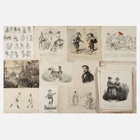 ca. 120 Blatt, Karikaturen, meist mit deutscher Betitelung, Lithographien und einige wenige Radierungen, teilweise koloriert, Mitte 19. Jh., unterschiedliche Erhaltungen, Blattmaße max. 43 x 30 cm.
