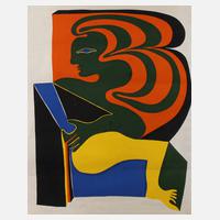 abstrahierte Frauengestalt mit wallendem Haar, Farbsiebdruck, unter der Darstellung rechts in Blei signiert und datiert "Baumgartner (19)75" sowie links betitelt und nummeriert "Interface 93/100", Erhaltungsmängel, ohne Glas gerahmt, Darstellungsmaße ca. 66 x 52 cm, Blattmaße ca. 69,5 x 59,5 cm. Künstlerinfo: dt.-österreichischer Maler, Graphiker, Zeichner, Buch- und Mosaikkünstler sowie Glasfenstergestalter (1929 Aurolzmünster bis 2006 München), 1949–55 Studium an der Akademie München, hier Meisterschüler von Hermann Kaspar, 1955 Teilnahme an der internationalen Salzburger Sommerakademie bei Oskar Kokoschka, 1956–58 Aufenthalt in Paris und Studium an der Académie de la Grande Chaumière, ab 1959 freischaffend tätig in München und Turin, zeitweise in Amsterdam und Rom, ab 1988 Dozent an der Akademie "Vulkaneifel" in Steffeln, Mitglied im Bund Bildender Künstler und in der Gesellschaft für christliche Kunst, Quelle: Vollmer, AKL, Saur "Bio-Bibliographisches Künstlerlexikon", Bütow "Europäisches Künstlerlexikon – Deutschland", Kürschner und Homepage zum Künstler.