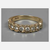neuzeitlich, Gelbgold gestempelt 585, besetzt mit sieben Brillanten, im Gesamtgewicht von ca. 0,4 ct, leichte Tragespuren, RW 18 mm, G ca. 4,1 g.